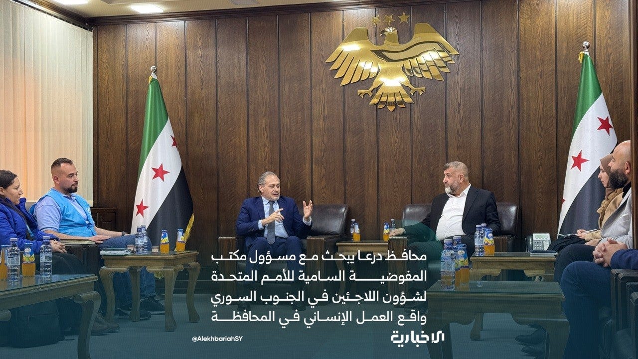 Governor of Daraa Anwar al-Zoubi hosted a meeting with the UNHCR representative for southern Syria, Ali Bibi, on April 7 to discuss humanitarian needs in Daraa and coordinating the programming of the UN and NGOs to be most impactful.