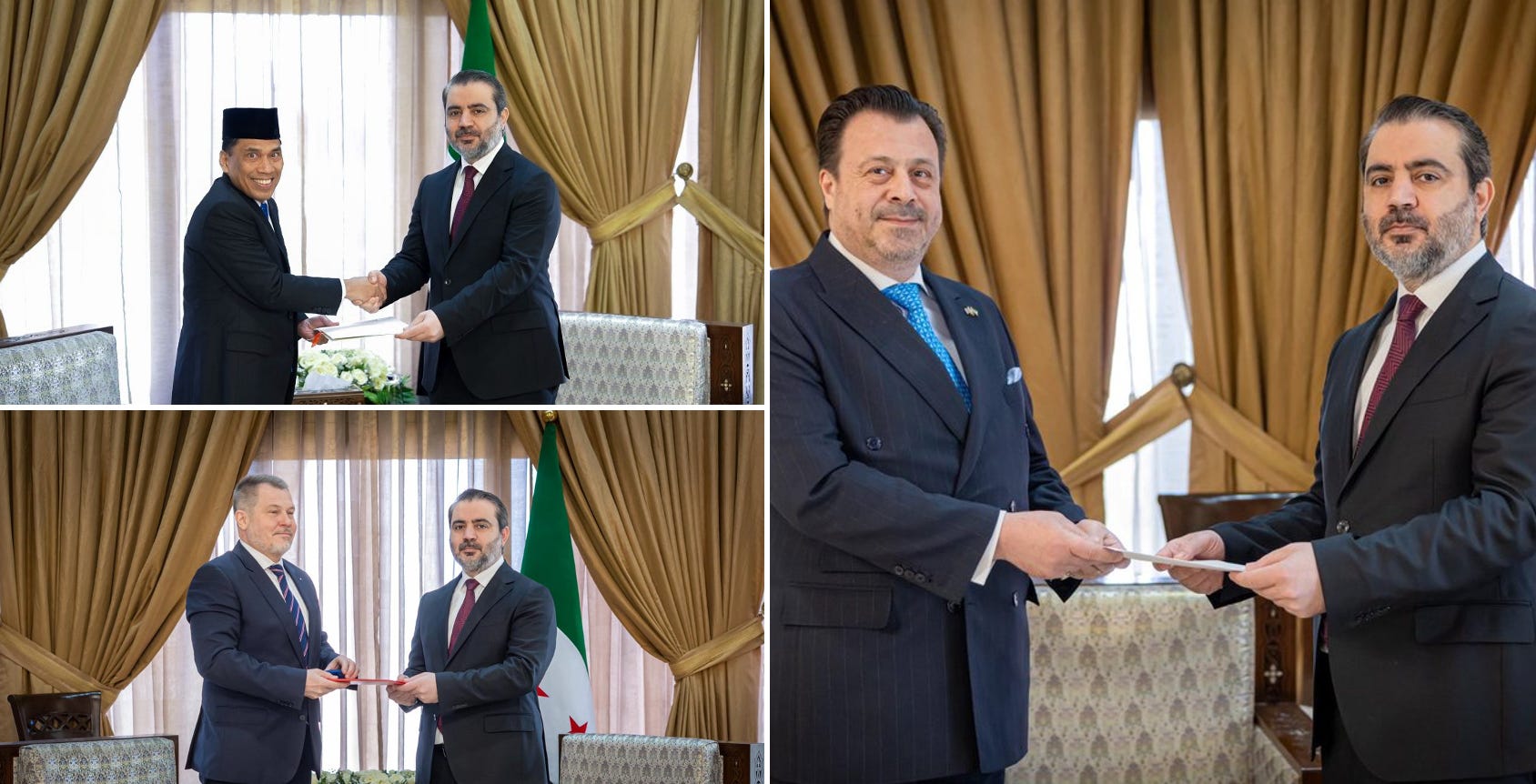Foreign Minister Asaad al-Shaybani hosted meetings and received the credentials of Indonesia’s Ambassador, Lukman Hakim Siregar; the Czech Republic’s Ambassador Vitislav Pivonka; and the Greek Ambassador Emmanuel Kakavelakis on April 7.